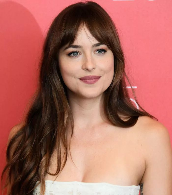 Dakota Johnsons Name ist fast schon ein Synonym für ihren kastanienbraunen Pony. Ihr Style teilt sich perfekt in der Mitte der Stirn – genau so, wie Curtain Bangs es sollten. Um diesen Look zu bewahren, empfiehlt Ford, den Pony alle sechs Wochen nachzuschneiden.
